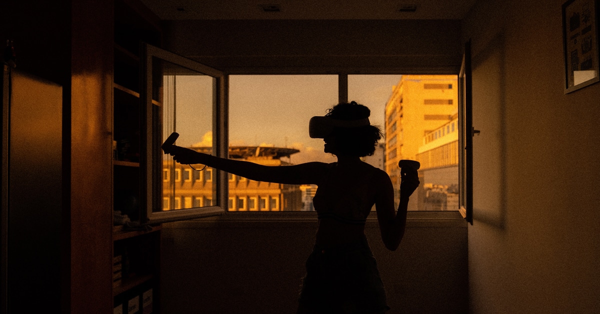 La realidad virtual es lo que la mayoría de la gente piensa cuando habla del metaverso. Los usuarios se ponen un casco de realidad virtual que abarca todo su rango de visión con pantallas digitales. El auricular también rastrea el movimiento específico de la cabeza del usuario. Algunos auriculares VR incluso rastrean el movimiento de los ojos. Todos estos elementos y más son procesados por el software del sistema para simular la interacción con un mundo virtual. Por ejemplo, girar la cabeza en el mundo físico mueve la vista en el virtual.